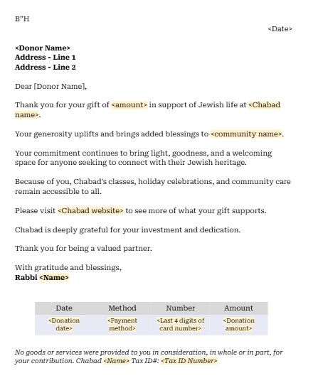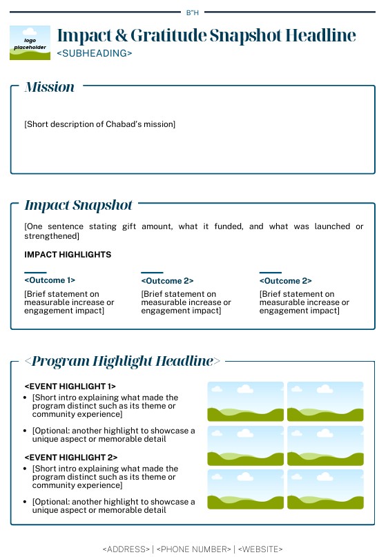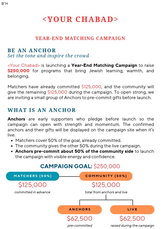 Rothman Coaching provides a collection of samples and resources designed to help Moisads strengthen donor relationships and improve fundraising communication. These materials include structured templates, storytelling examples, and communication tools that guide Shluchim in appreciating donors, sharing impact, and maintaining consistent engagement. The resources focus on practical donor stewardship strategies that makes fundraising more relational, meaningful, and sustainable.